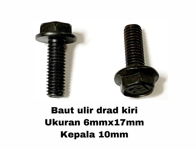Deskripsi Baut ulir drad kiri untuk 4100NB atau 5800NB • baut ulir drat kiri • ukuran 6x17mm • kepala M10 • untuk mesin marble cutter 4100NN dan sejenisnya dan mesin circular saw 5800NB dan sejenisnya • teliti sblm membeli